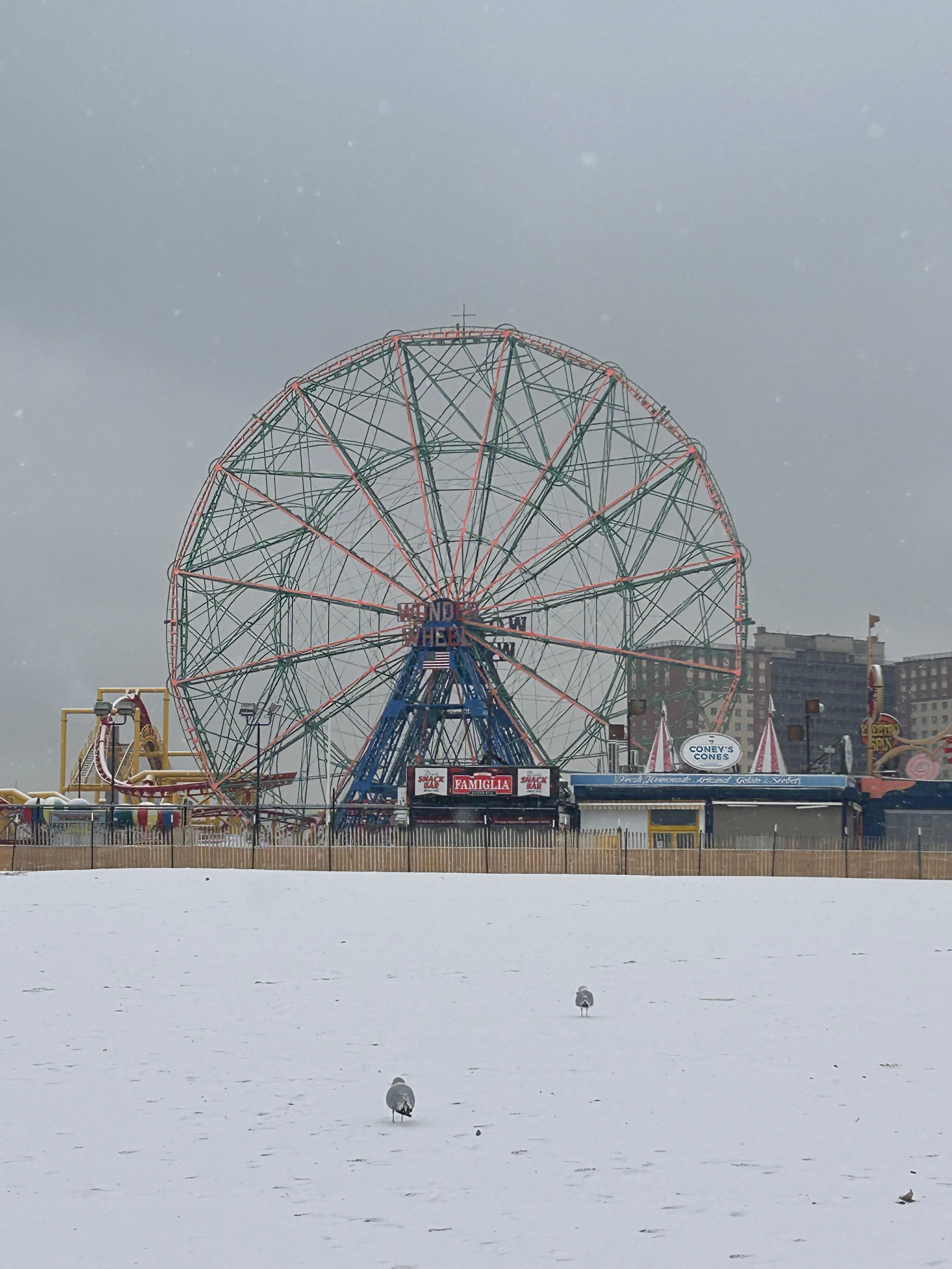 More frivolously, last Monday was my birthday (and also my son’s birthday!) And it snowed! I convinced my husband to play hooky with me and we went to Coney Island and played in the snow-sand and then ate Georgian food, and it was perfect and eerie to have the place virtually to ourselves. I like remembering that New York is a coastal city, and I also like finding moments where it’s totally quiet here. One thing I’m trying to do this year is to slightly skew my perceptions of the world, and Monday was a fun way to do that.
