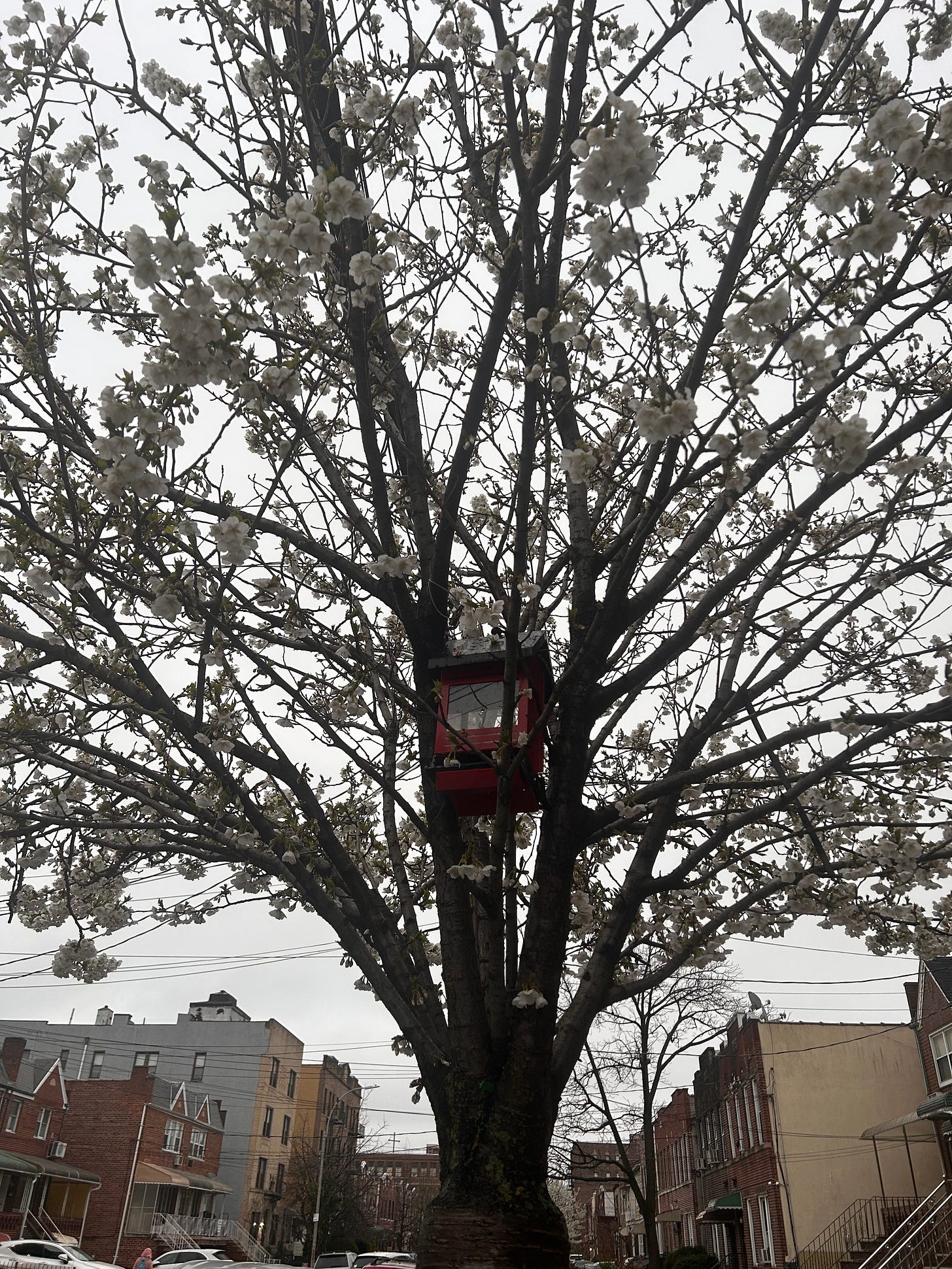 Well, it’s been cold and rainy and not very springlike here this week. But someone in my neighborhood put a pretty red birdhouse in this tree, and I really appreciated that. Spring will come.